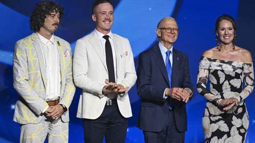 Professor Brodaty, second from right, with other winners, the Australian of the Year, astronaut Katherine Bennell-Pegg, Local Hero Frank Mitchell, left, and Young Australian of the Year Nedd Brockmann.