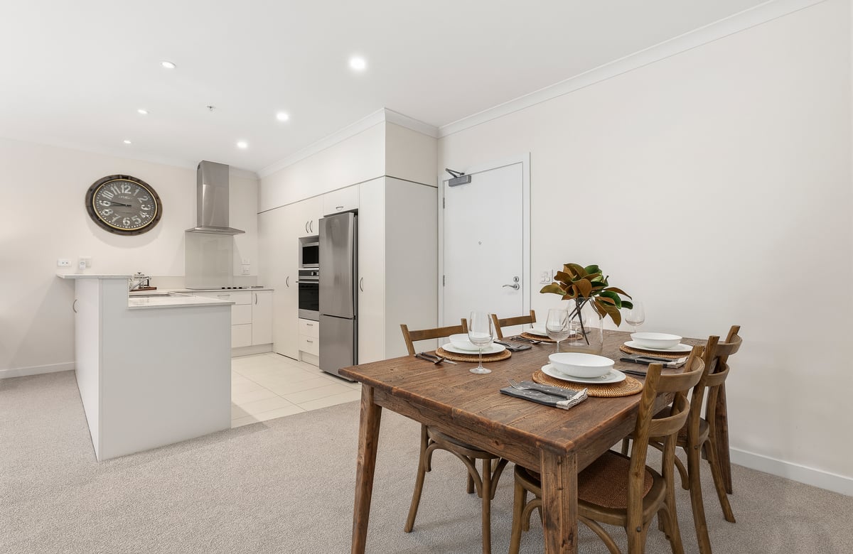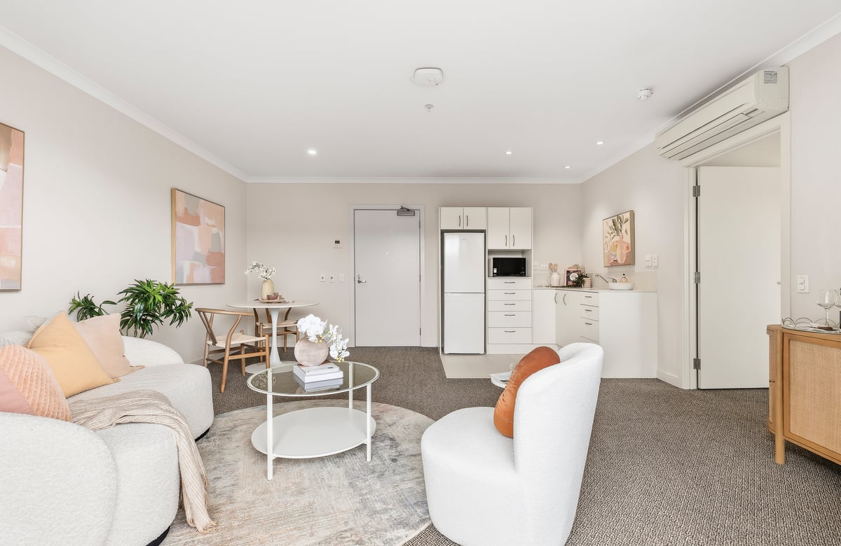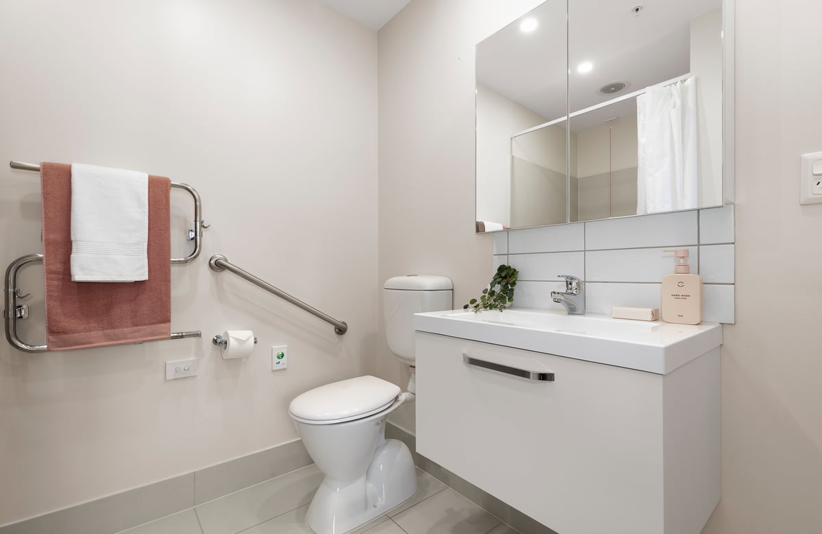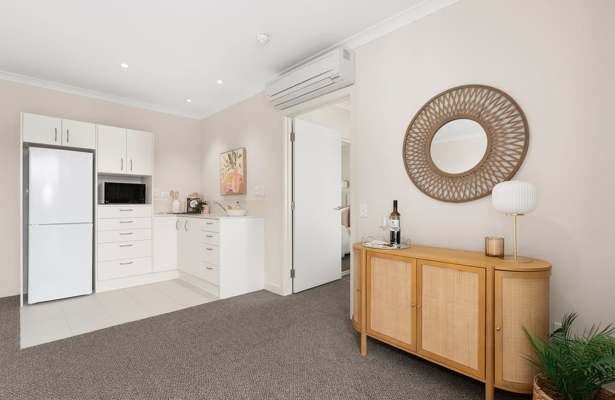 Designed to help you maintain your independence, this assisted-living apartment includes a private kitchenette, separate bedroom with a double built-in wardrobe, and a modern ensuite. A balcony connects seamlessly to the beautifully manicured gardens below, creating a relaxing space to enjoy your morning tea or a good book.