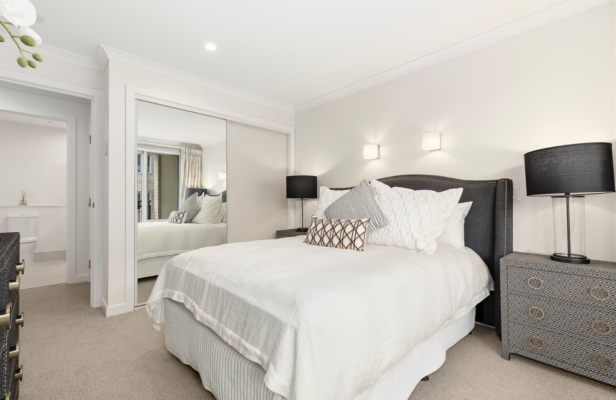 This unique corner apartment boasts a stunning wraparound balcony. With unbroken views north across the trees and east over the sunny courtyard and gardens, the home captures both morning and afternoon sun, creating an inviting and relaxing atmosphere.